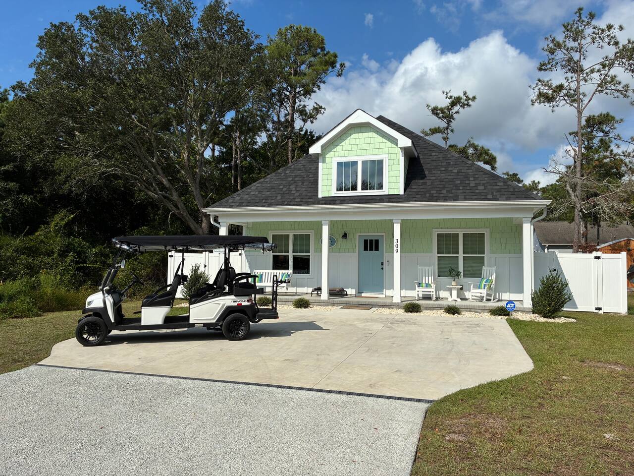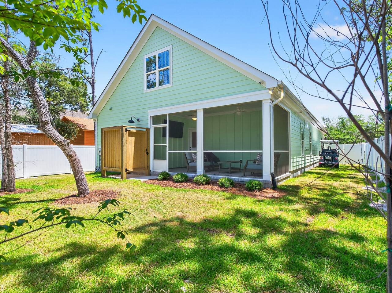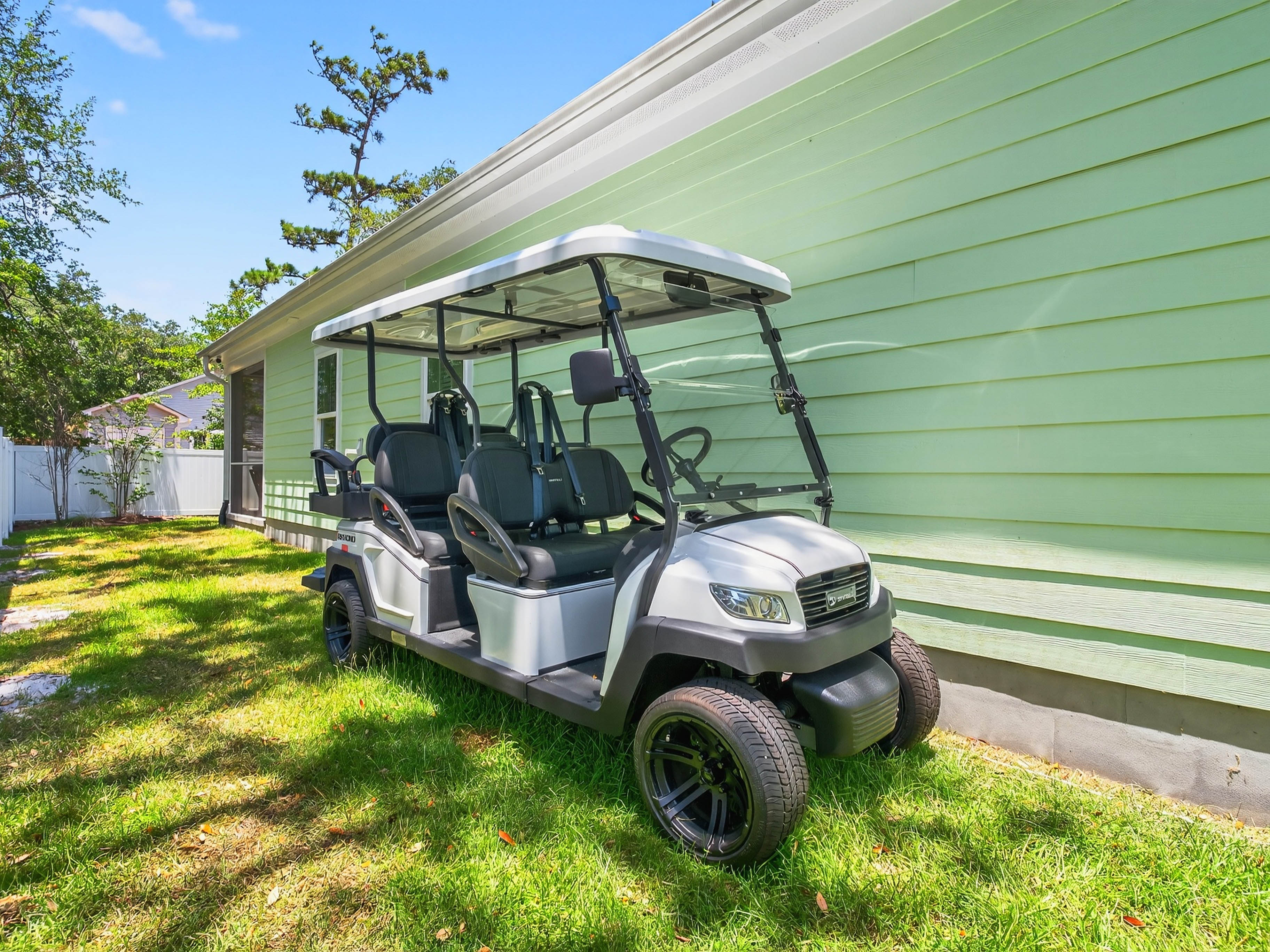 Welcome to The Salty Ace – family owned and operated! Beach Access: 3 min drive/15 min walk **OPTIONAL GOLF CART RENTAL PRICING** May 1- Aug 31: $90/day or $600/week Sep 1-Apr 30: $65/day or $400/week Golf Cart Details: 2025 Bintelli Beyond 6-seater • RESIDENT BEACH PARKING INCLUDED with rental of golf cart! • Valid driver license required w/ liability waiver • 5-point harness car seat • Cooler compartment • Apple CarPlay Stereo/Bluetooth, phone charging dock • Street legal: seatbelts, turn signals, long-range lithium battery Bedrooms (Sleeps 14) • Primary Suite: King bed • Bedroom 2: Queen bed • Bunk Room: 2 twin-over-twin bunks (4 beds) • Bedroom 4: Queen bed • Extra: Queen sleeper sofa + full sleeper sofa (linens provided) Kitchen & Dining 🍳 • Fully stocked: air fryer, blender, waffle maker, popcorn maker, spice set • Stainless cookware, serving dishes, wine glasses • Keurig Duo (drip + K-Cups) • Slushy & popcorn makers • Dining table seats 6 • Island seats 4 Family-Friendly 👶 • Pack & Play, BOB jogging stroller, infant bath, high chair, booster seat • Changing table, baby gates, toys, books, plastic dinnerware Outdoor Living 🌴 • Screened porch with TV + fan • Fenced backyard- safe for kids & dogs • BBQ electric grill • Hot/cold outdoor shower Beach Gear 🏖 • 14 beach chairs, 4 lounger chairs, 12 beach towels, two cool cabana tents, umbrella, pop-up canopy • Beach wagon, cooler, sand toys, boogie boards, Entertainment 🎲 • Puzzles, family games, poker set, mini-library • Outdoor games (horseshoes, bocce and two pickleball paddles) Guest Extras 🌟 • Starter pack: paper goods, soaps, detergents, coffee pods • Fast WiFi + loft lounge area • Pet-friendly amenities (dog bowls, nook w/ dog bed, collapsible soft crate, cooling mat) • Shop vac • Air compressor pump for inflating beach gear, floats or tires House Rules No parties or large events Must be 21+ to book No smoking inside or on the screened porch We’ve poured love and care into every corner of The Salty Ace, and we genuinely want your stay to be amazing. If anything’s not quite right, give us a chance to make it better. We also truly appreciate thoughtful reviews — they mean the world to us and help other families discover their own beachside memories. Thank you for respecting our home and helping us provide a clean, peaceful space for all guests.